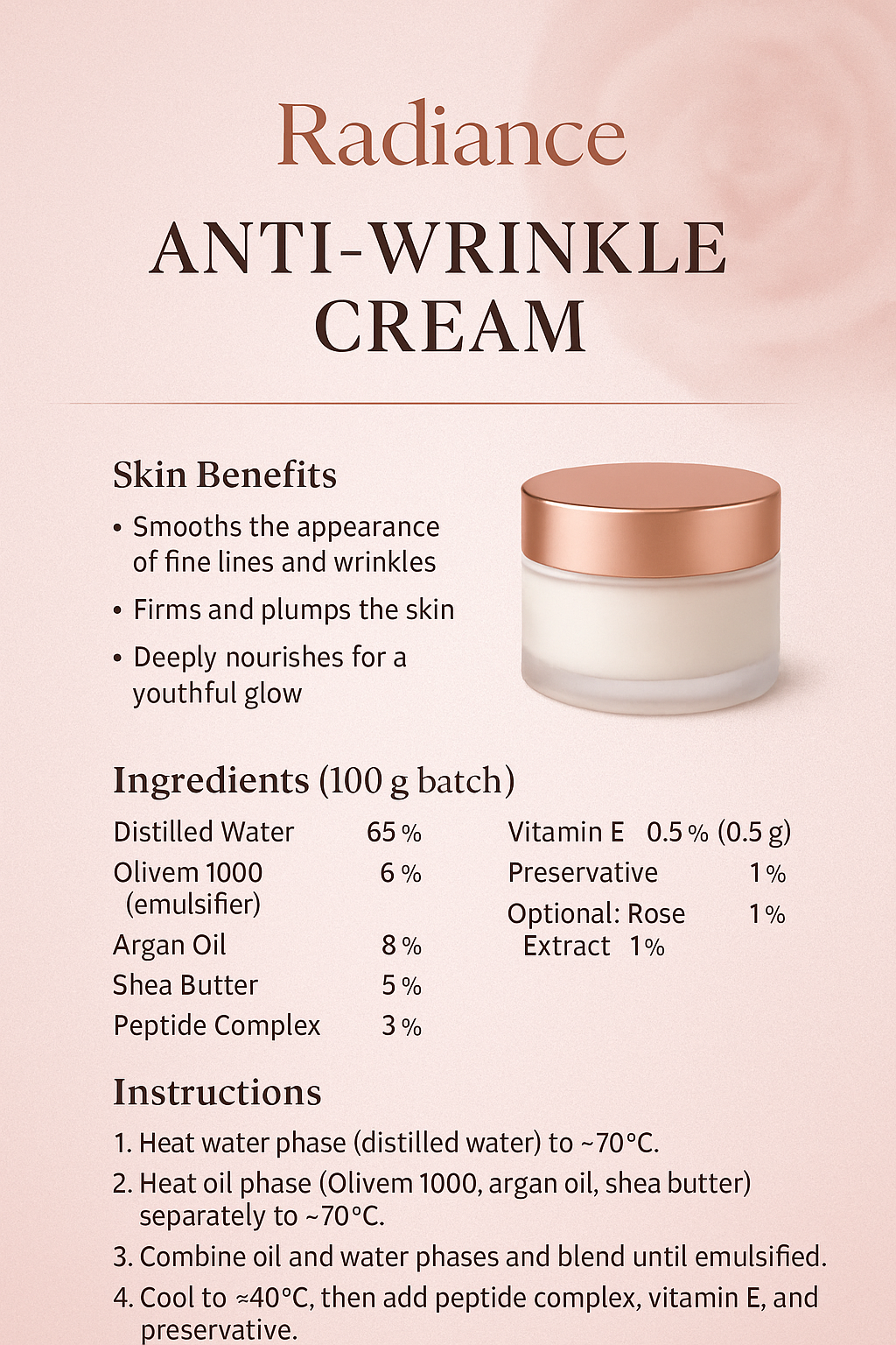 - Radiance Anti-Wrinkle Cream – Smooth fine lines and restore youthful firmness with our rich, age-defying formula.