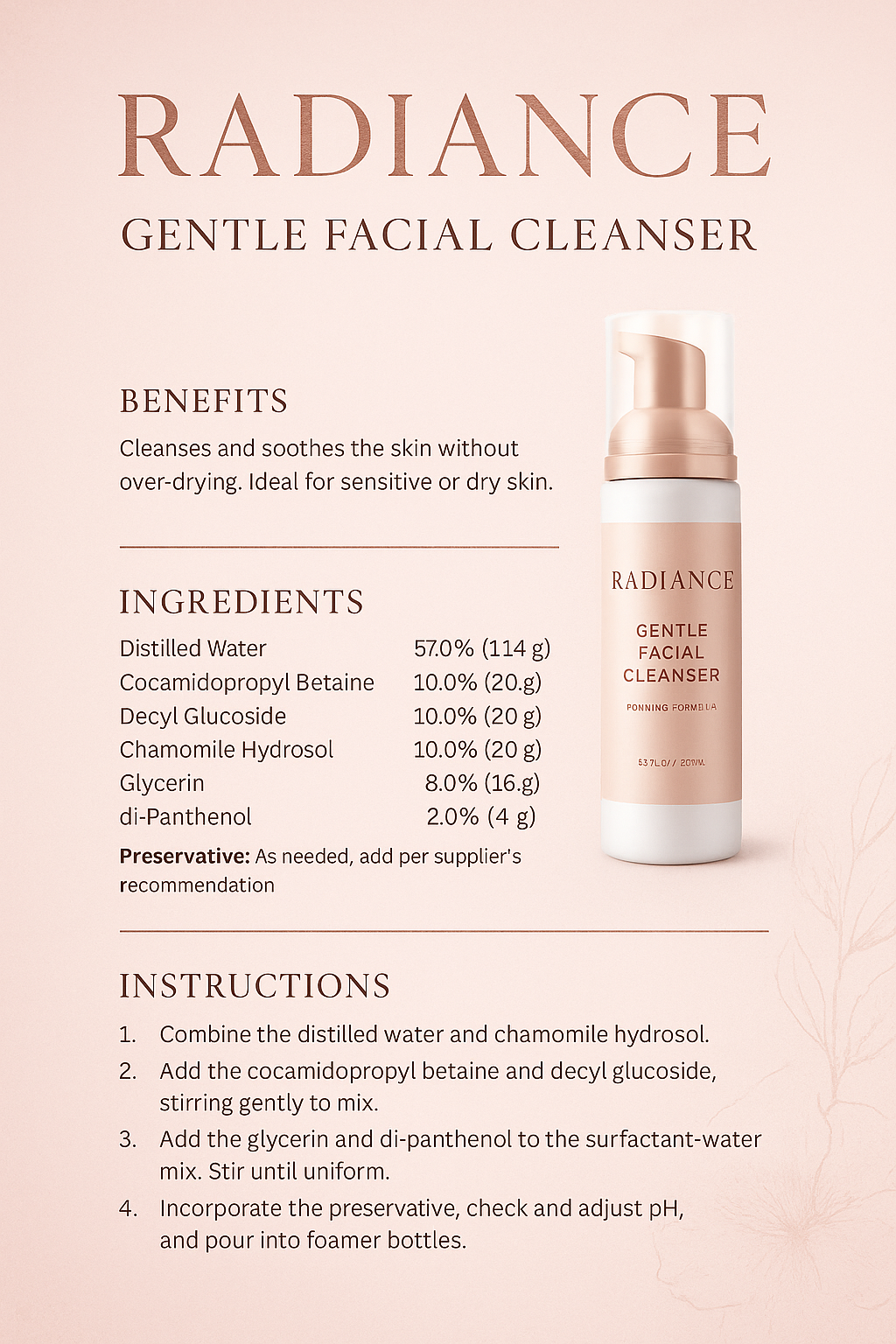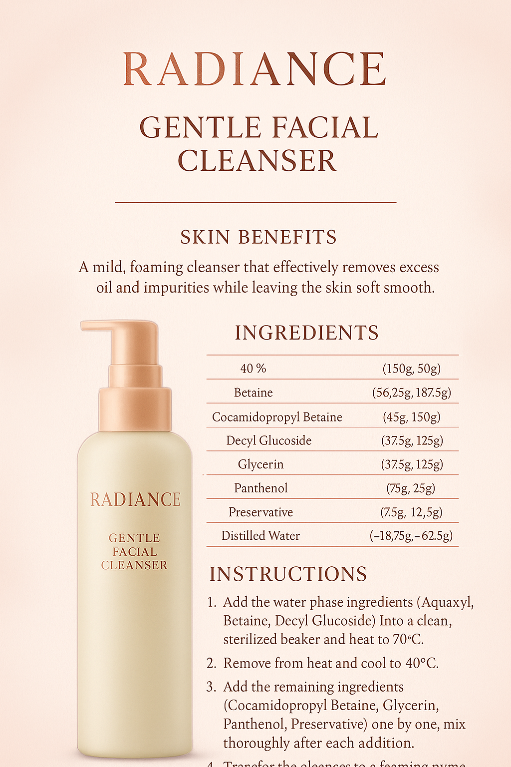 - Radiance Gentle Facial Cleanser – A soothing, foaming wash that removes impurities without stripping natural moisture.